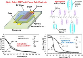 Fabrication of a planar water gated organic field effect transistor using a hydrophilic polythiophene for improved digital inverter performance