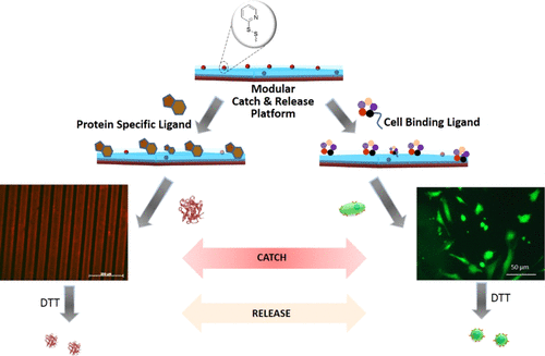 Orthogonally Functionalizable Redox-Responsive Polymer Brushes: Catch and Release Platform for Proteins and Cells