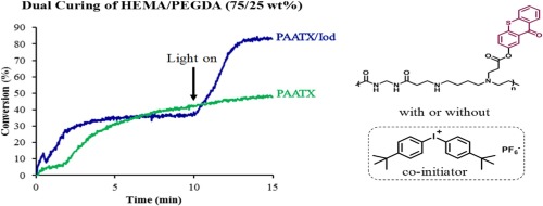 Water soluble polymeric photoinitiator for dual-curing of acrylates and methacrylates