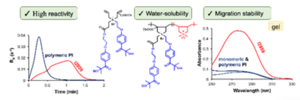 Irgacure 2959-functionalized poly(ethyleneimine)s as improved photoinitiators: enhanced water solubility, migration stability and visible-light operation