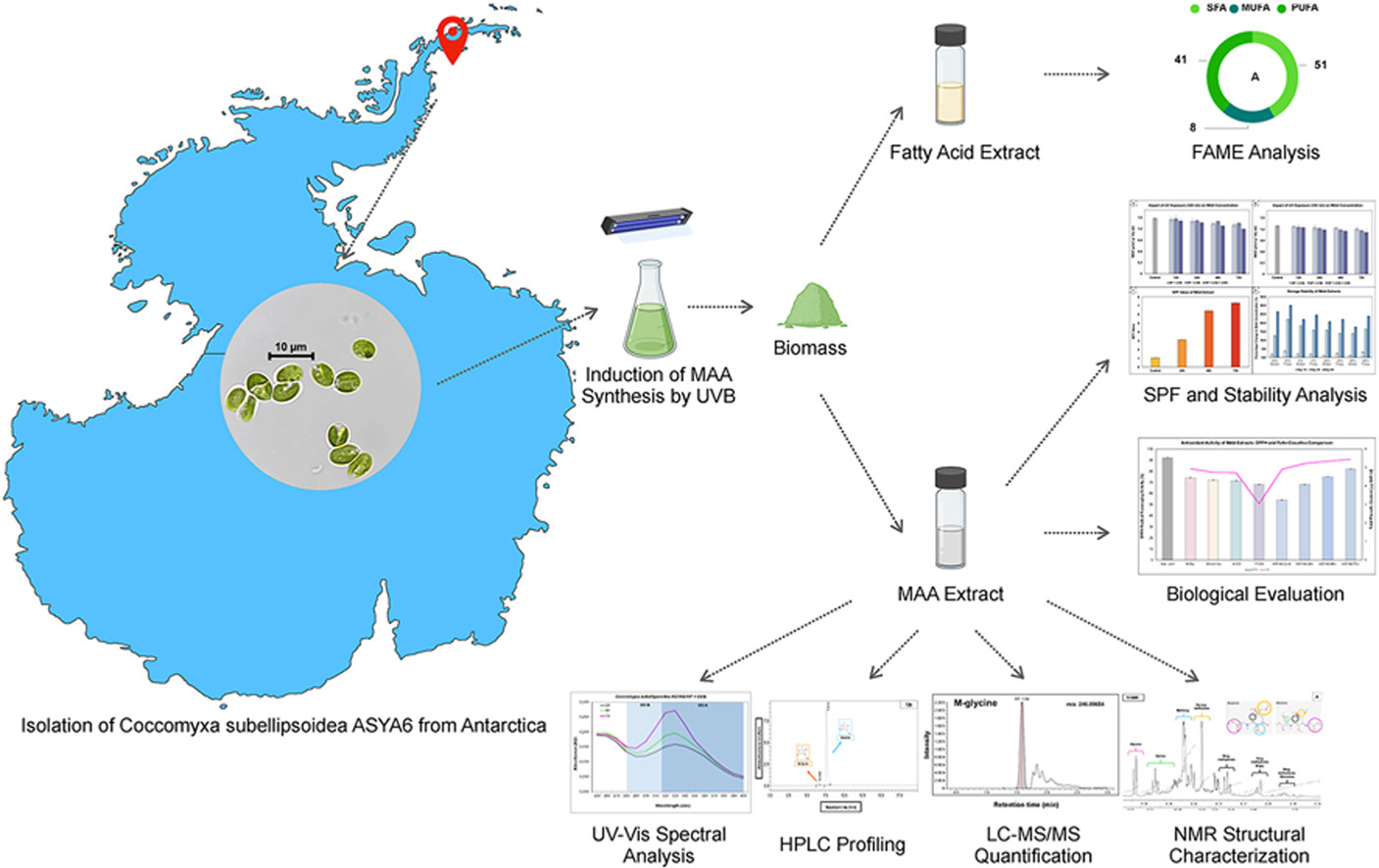 Psychrotolerant Coccomyxa subellipsoidea ASYA6 for sustainable UV protection: A novel green source of mycosporine-like amino acids